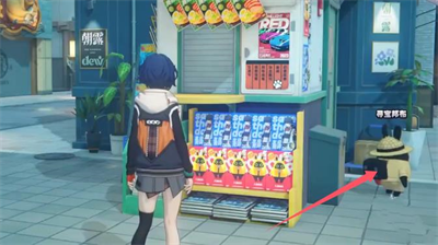 到达指定位置后,注意观察报刊亭右后方区域。在铁艺长椅与自动售货机之间,可以看到一只佩戴矿工帽的寻宝邦布正在执行扫描作业。建议切换至潜行模式靠近,避免惊动巡逻的机械守卫。